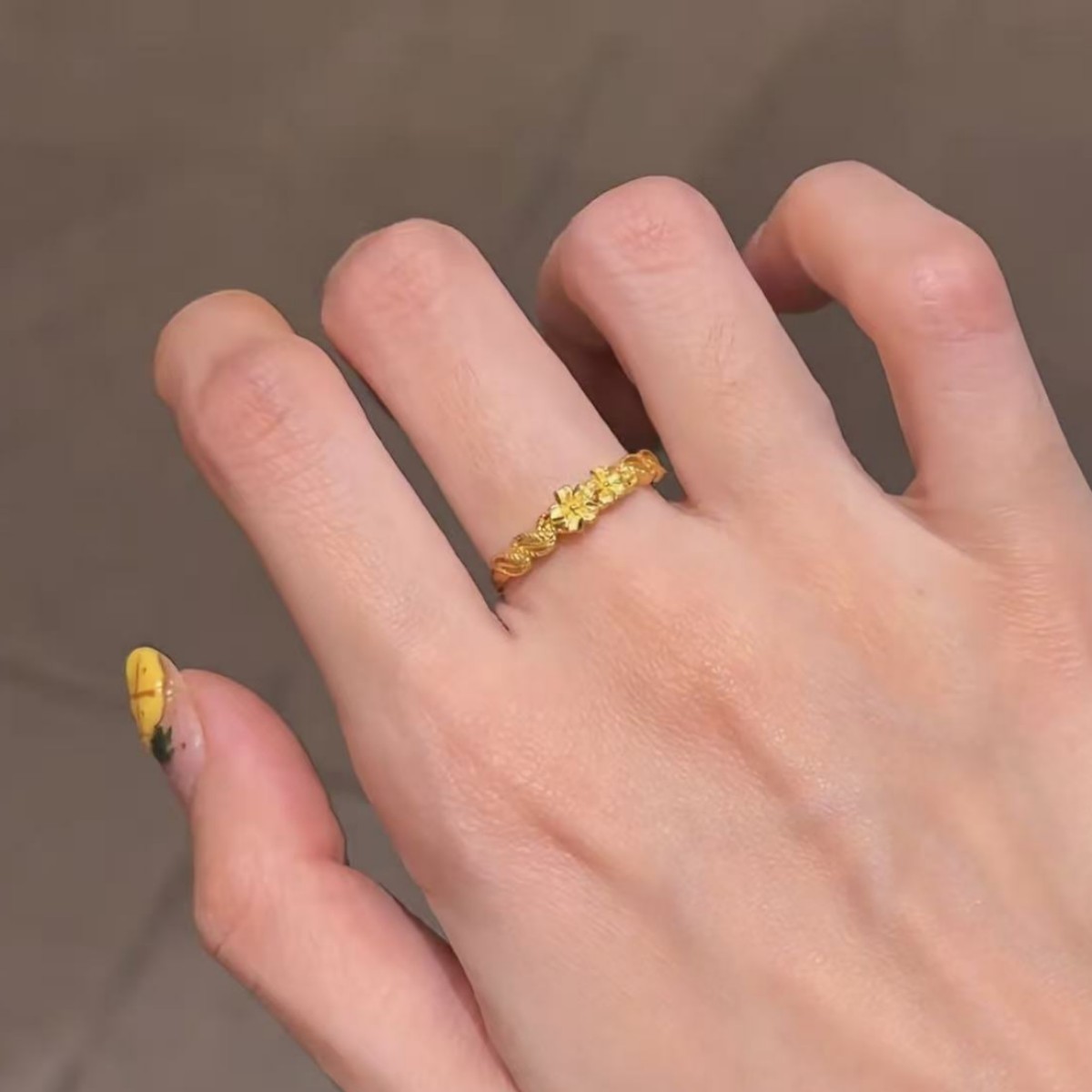 New Chinese-Style Golden Vine Flower Ring with Artistic Retro High-End Exquisite Design and Chinese Style Stackable Live Mouth