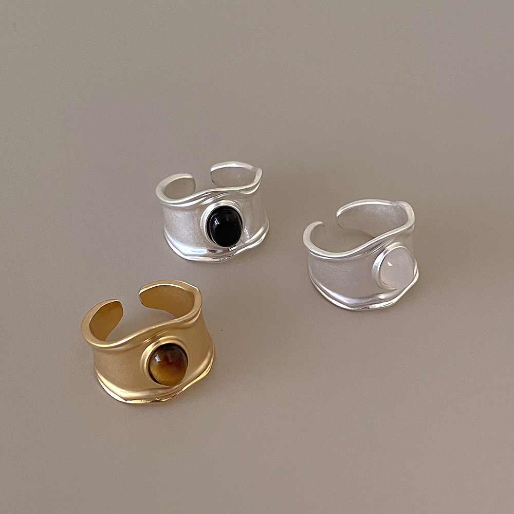 French style Korean style niche design sense heavy industry Oval agate ring Korean style blogger fashion ring