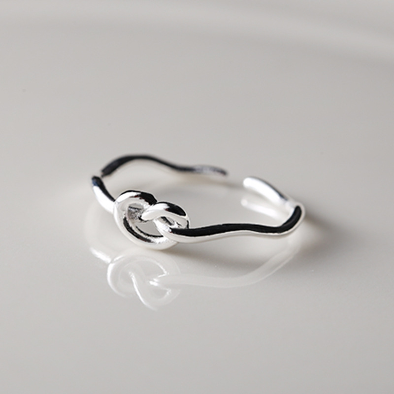 Knot Heart Ring S925 Sterling Silver Simple Wave Ins Popular Designer Index Finger Ring Opening 0022A