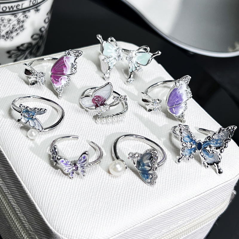 New Fashion Distinctive Enamel Gradient Butterfly Ring Women's 2025 Internet Celebrous Cold Style Niche Design Sense Finger Ring