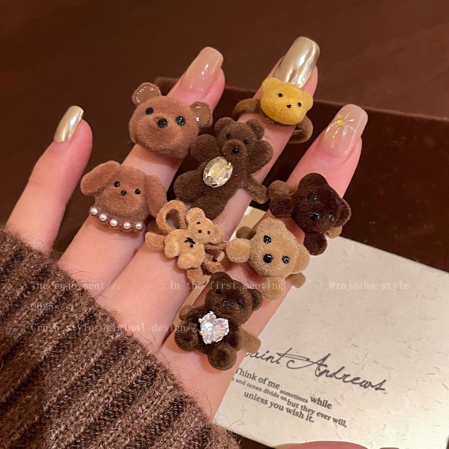 Cute Brown Bear Open Ring 2025 New Hot Style Design Stacked Ring Strange Ring