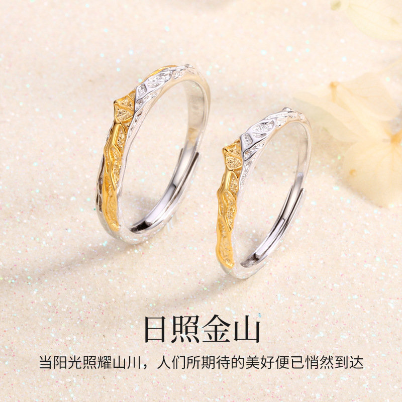 Rizhao Jinshan Pair of Rings 18K Gold Color Pure Silver 999 Material Couple Style Niche Design for Girlfriend