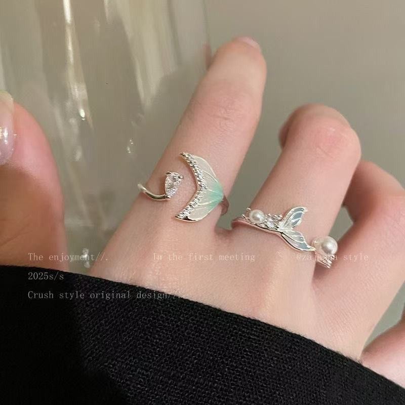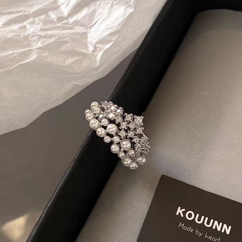 High-grade Pearl zircon ring female light luxury niche exquisite design fashion ring ins Internet celebrity style tail ring