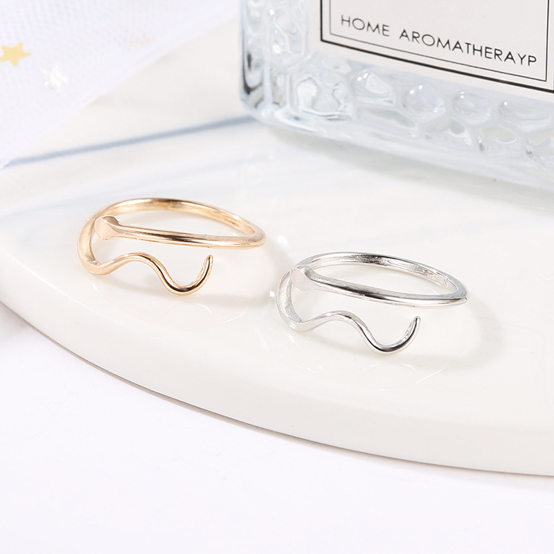 Cross-Border Supply Snake-Shaped Ring European and American Simple Open Water Ripple Ring Niche Design Women's Snake-Shaped Ring