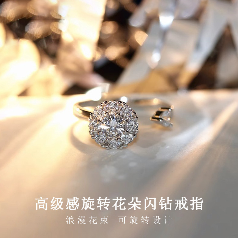 Fashion Elegant Rotating Flower Ring Women's Light Luxury Niche High-end Design Sense Open Ring Daily All-match Bracelet
