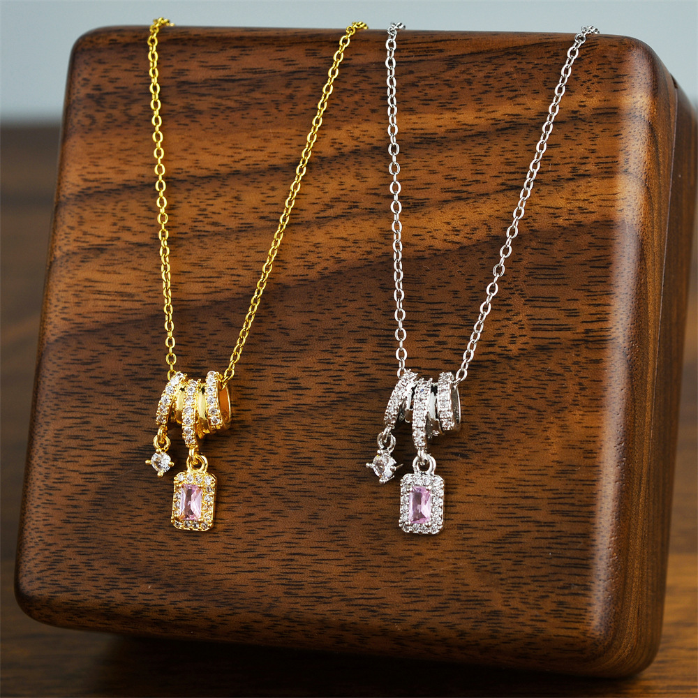 New Sparkling Tassel Square Pendant Accessories Titanium Steel Necklace Niche Design High-End Micro-Paved Zircon Clavicle Chain