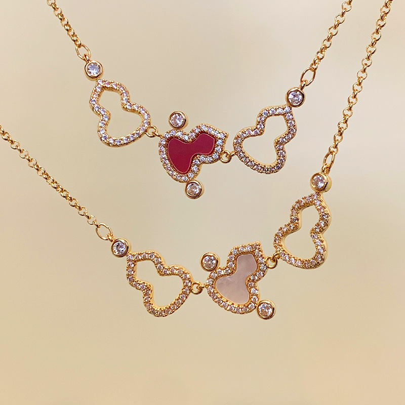 Niche Accessible Luxury Cut Out Gourd Zircon Mother-Of-Pearl Necklace Unique Design Burgundy Pendant Sweater Chain Neck Necklace for Women