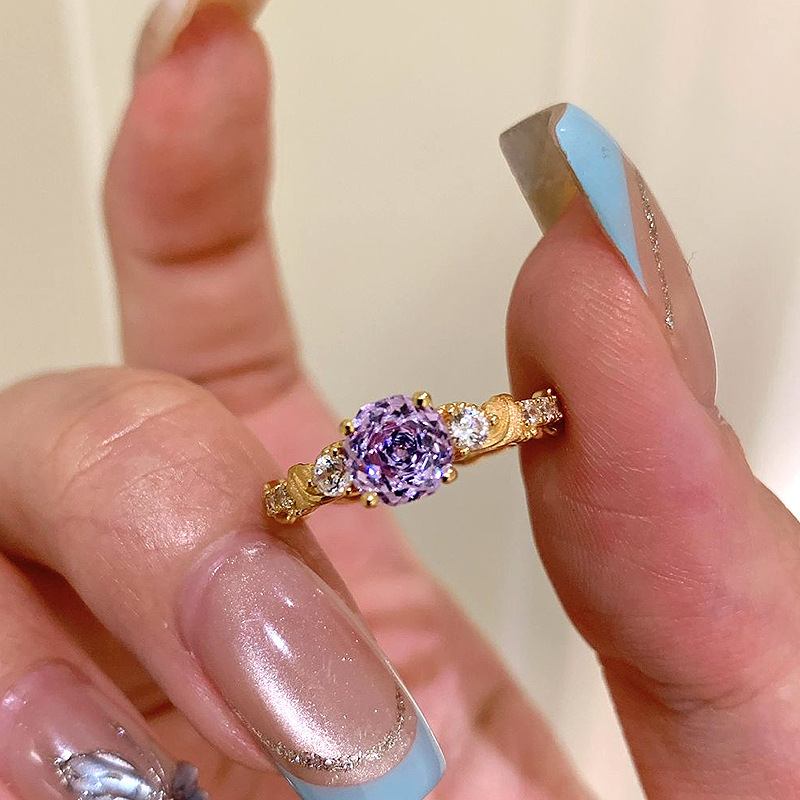 Trendy Elegant Design Purple Zircon Ring from Xiaohongshu, Niche Light Luxury Versatile Open Ring
