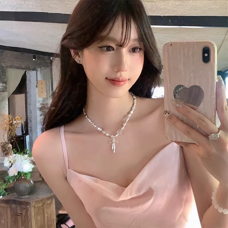 French Bow Ribbon Necklace Women's Niche Design Ballet Style Clavicle Chain Light Luxury High-End Sweet Accessories