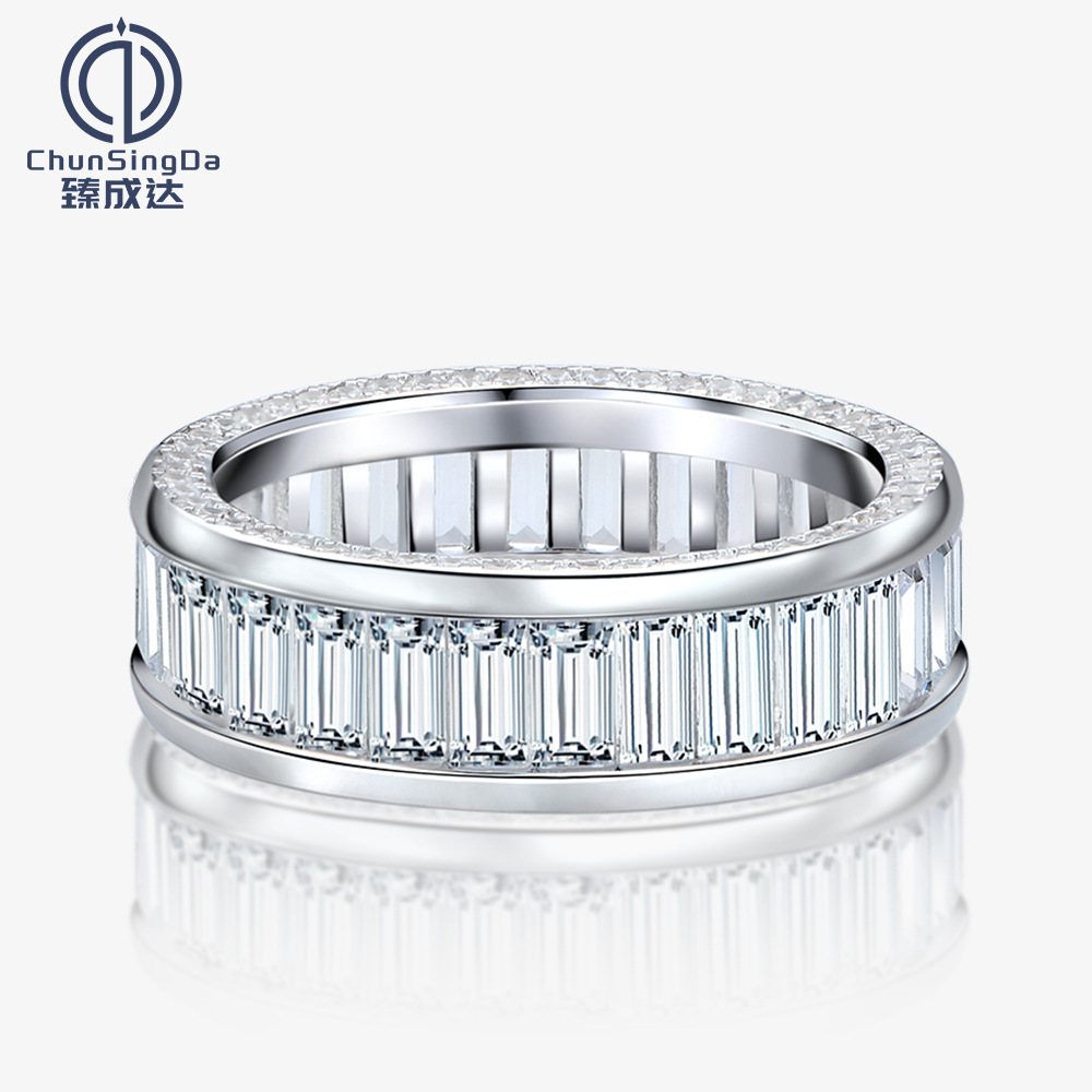 Zhen Chengda Original New Product Long Square Zirconium Rif Diamond Inlaid with S925 Sterling Silver Ring Female Niche Design Sense European and American Jewelry