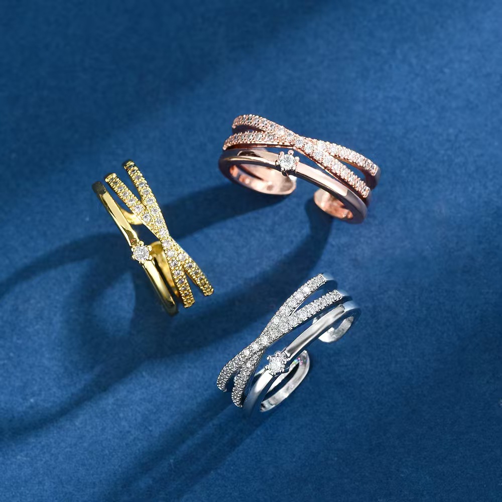 Cross-border Ins Internet Celebrity Same Style Zircon Super Flash Cross Ring Women's Niche Simple Advanced Design Sense Open Food