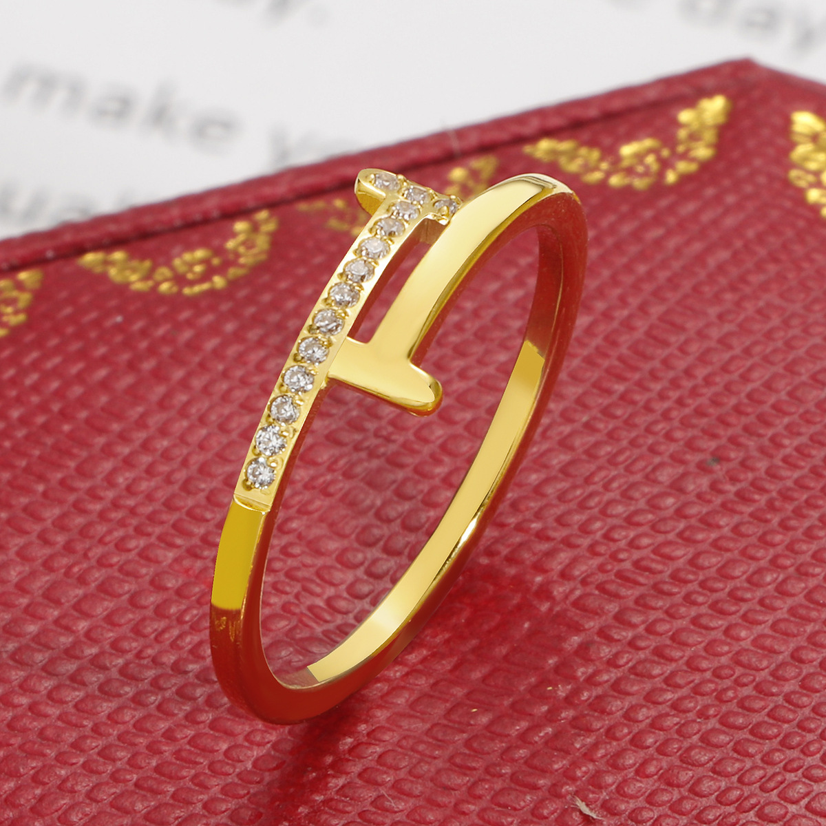 Korean Version Niche Double t Diamond-Studded Design Cross Ring for Women, Titanium Steel, Non-Fading, High-End Index Finger Knuckle Ring