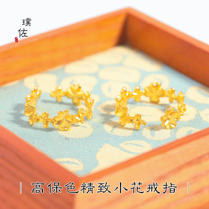 Gold shop with strong color retention Vietnam sand gold full circle peach blossom open ring niche design feeling index finger ring ring women