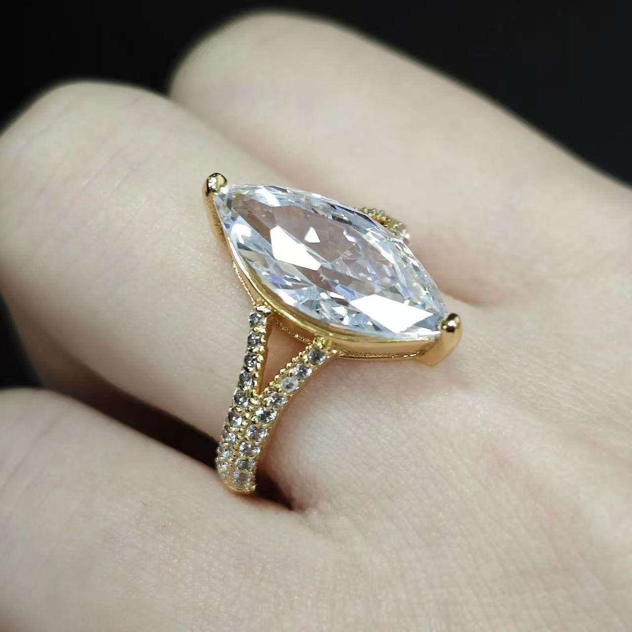 Temu Cross-Border Pinduoduo Tk Hot Selling Diamond Women's Ring Design Water Drop Pear-Shaped Zircon Ring Wedding Diamond Ring