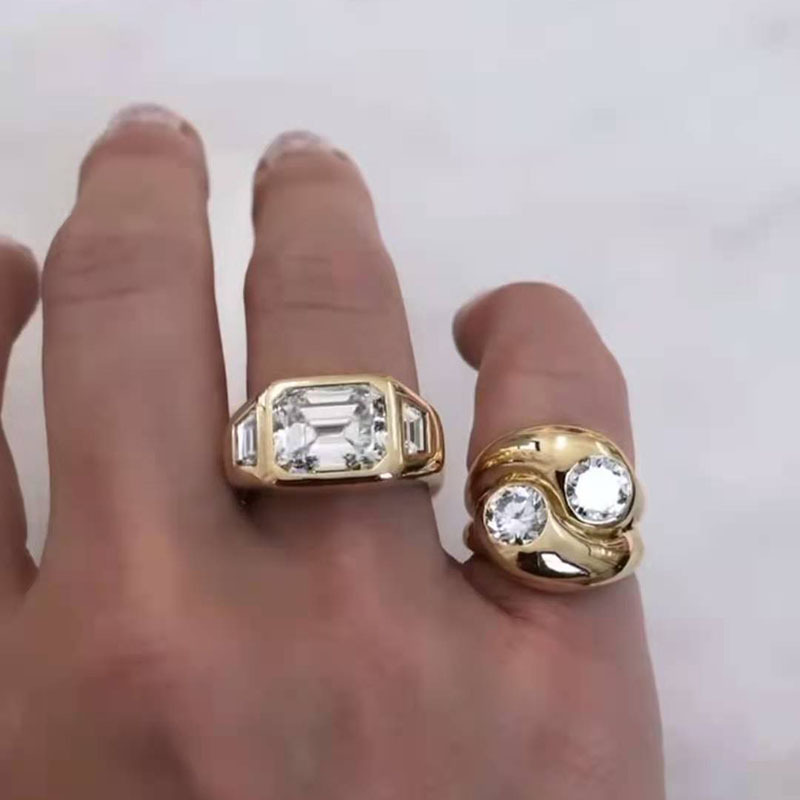 Designer Designed Flash Zircon Ring for Women, Fashionable and Personalized Moissanite Diamond Ring, Titanium Steel Gold Plated