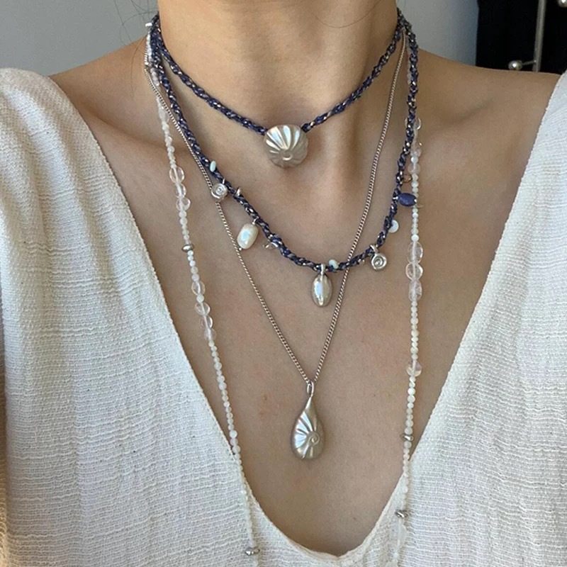 Pleated Shell Braided Rope Necklace Conch Niche Designer Hand Braided Rope Retro Clavicle Chain Simple Pendant Jewelry