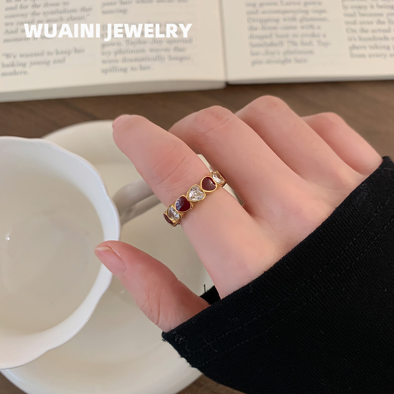 Cross-Border New Ankora Red Love Zircon Diamond Ring for Women, Light Luxury, High-End, Wealth-Enhancing Pair of Rings, Niche Design