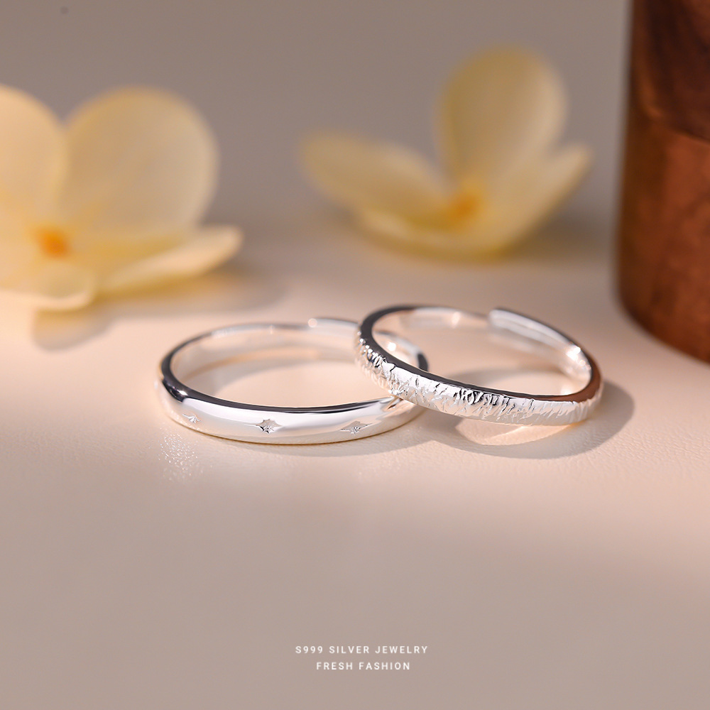 Gypsophila Plain Silver Couple Ring S999 Sterling Silver Four-Pointed Star Texture Niche Design Ins Open Index Finger Ring