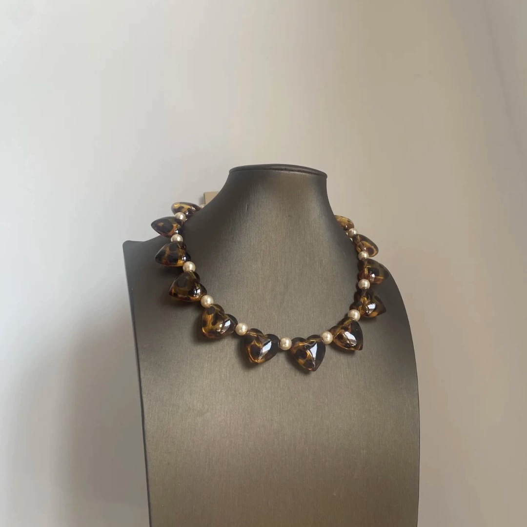 2026 New Style Heart-Shaped Necklace Short Choker for Women with a Sense of Design, Non-Fading Resin Pearl Clavicle Chain