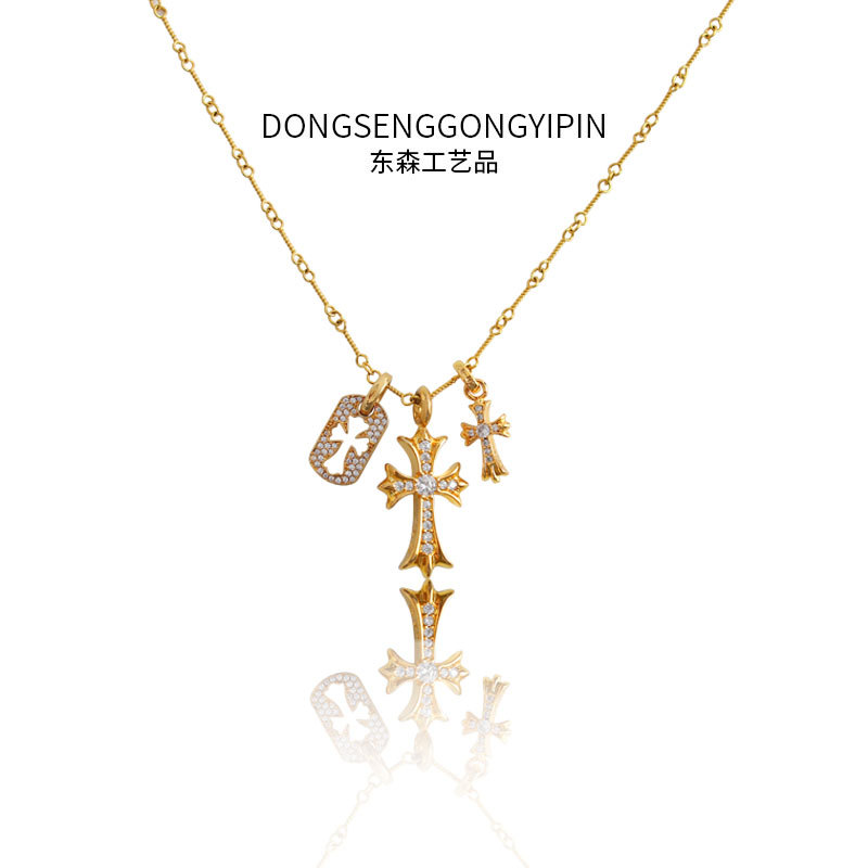 Amazon 24 New Crow Core Cross Diamond Pendant Necklace Women's Design Sense Copper Plated 18K Gold Jewelry