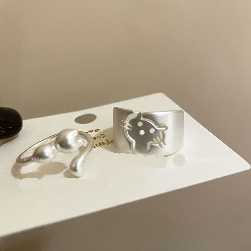 Matte Kitten Ring Women's New Explosions Niche Design Sense Ring Korean Style Cute Girl Food Finger Ring Jewelry