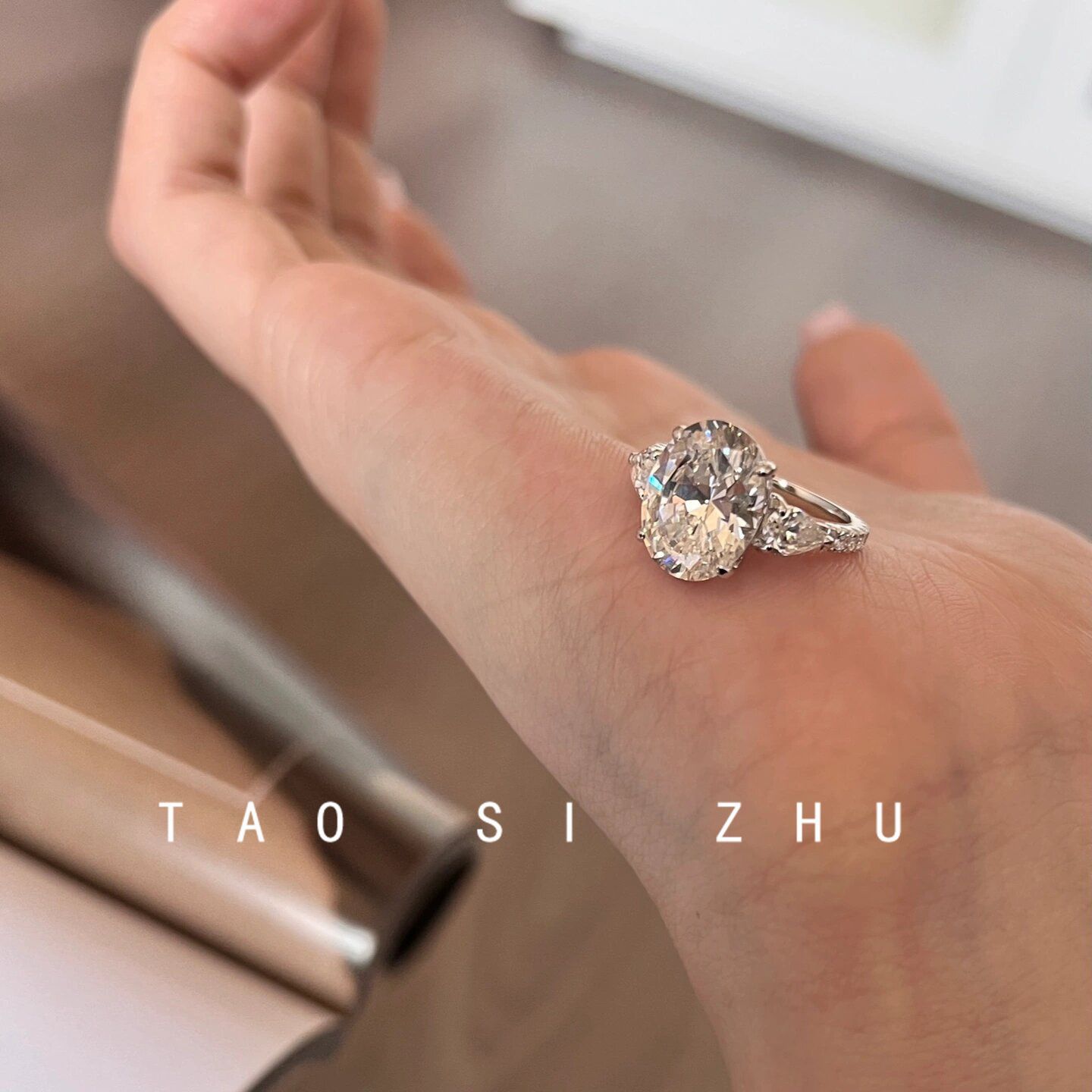 Flash super large white stone ring female luxury high-grade pigeon egg niche design temperament fashion Open ring