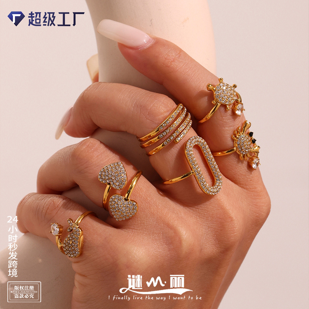 Mili Stainless Steel 5A Zircon Open Ring Titanium Steel Non-Fading Niche Design Ring Ring European and American Jewelry