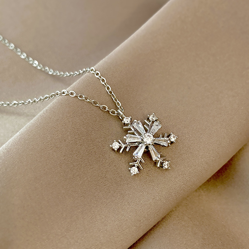 Dongdaemun simple snowflake titanium steel necklace design sense rotatable zircon pendant light luxury niche clavicle chain wholesale