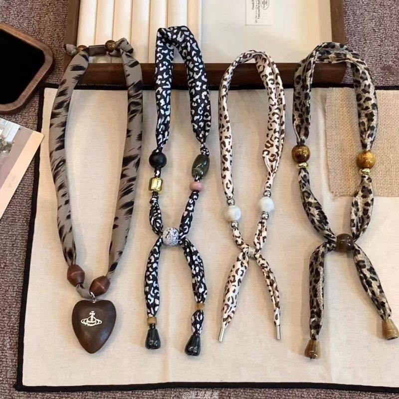 Maillard Color Series ~ Retro Leopard Print Silk Scarf Necklace Women's Niche Design Sweater Chain Halter Neck Silk Scarf Accessories