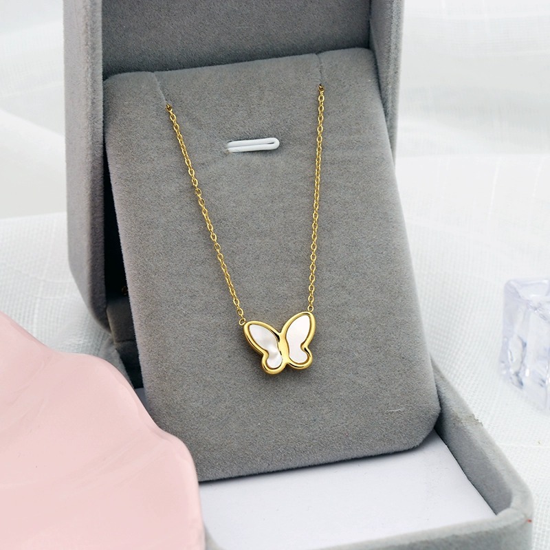 White Shell Butterfly 18K Gold Necklace Women's Korean-style Niche Design Refined Fritillaria Light Luxury Clavicle Chain