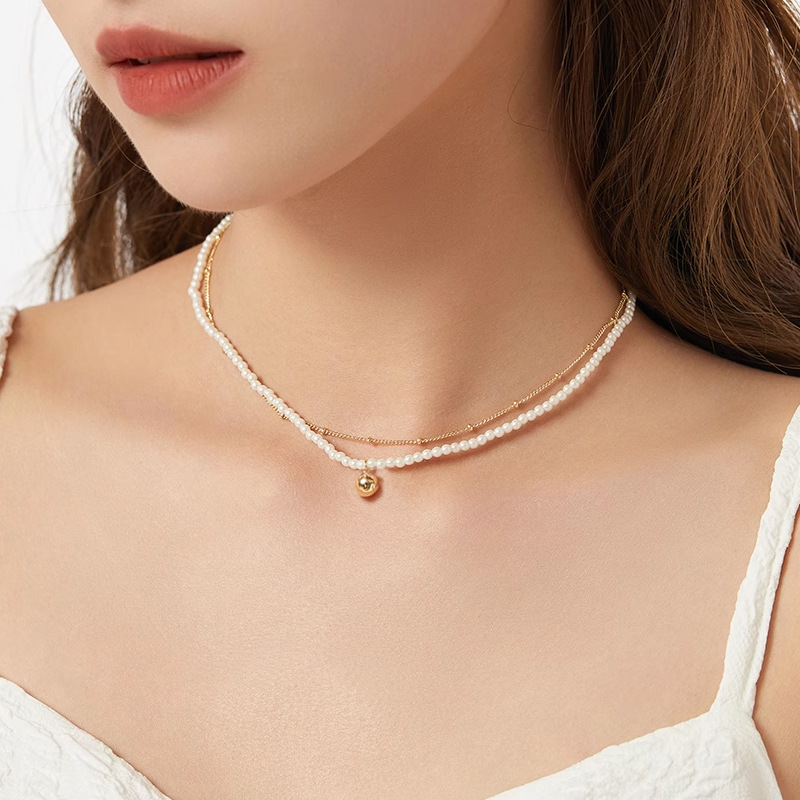 Shijia Pearl Necklace Women's High-end Clavicle Chain All-match Beaded Double-layer Necklace Design Light Luxury Necklace Wholesale
