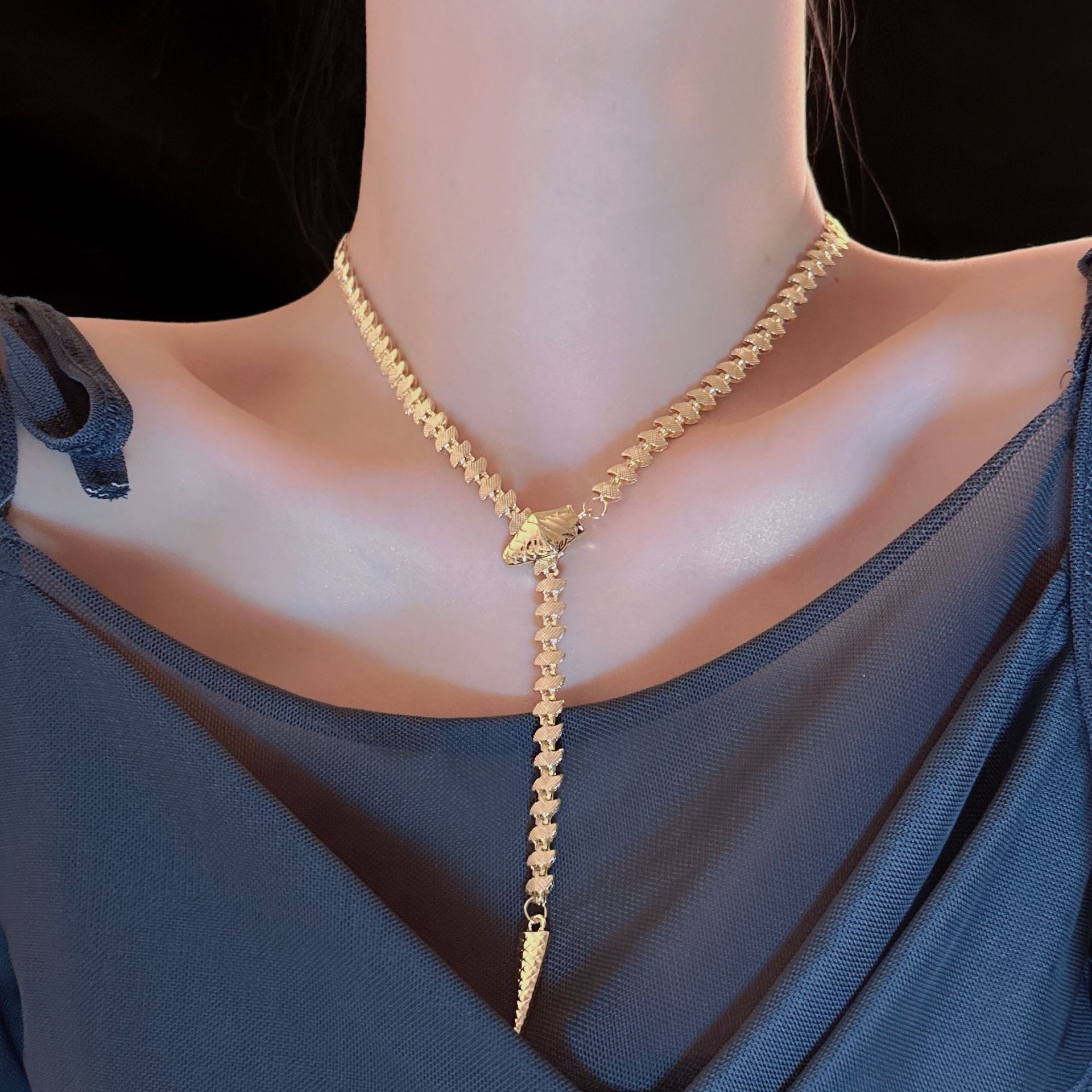 Sweet cool snake-shaped necklace for women light luxury niche European and American advanced design personality temperament snake bone chain snake bone chain necklace