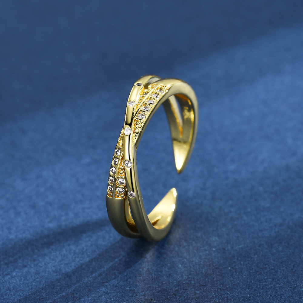 Cross-Border Minimalist Gold-Colored Ring for Women with Cross-Inlaid Zircon, Niche Design with an Instagram-Style Cool Open-Ended Index Finger Ring