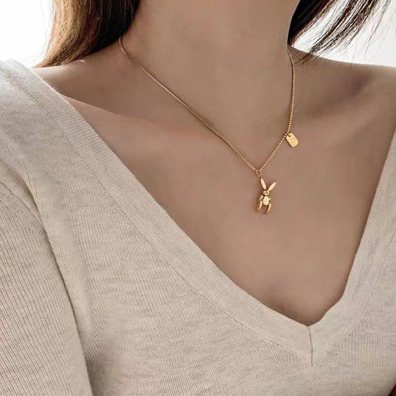 Titanium steel mechanical rabbit necklace female niche design sense 2022 new clavicle chain non-fading sweater chain accessories
