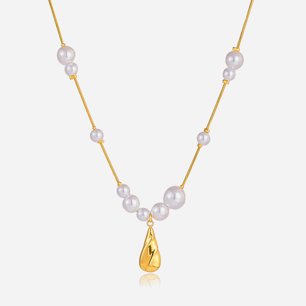 Quiet Designer Classic Feng Shui Drop Pendant Pearl Necklace Light Luxury Niche Stainless Steel Cross-Border Jewelry High-End
