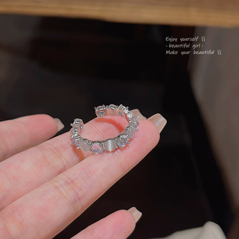 Light Luxury Niche Advanced Design Sense Cat's Eye Ring Women's Opening Adjustable Crystal Zircon Index Finger Ring
