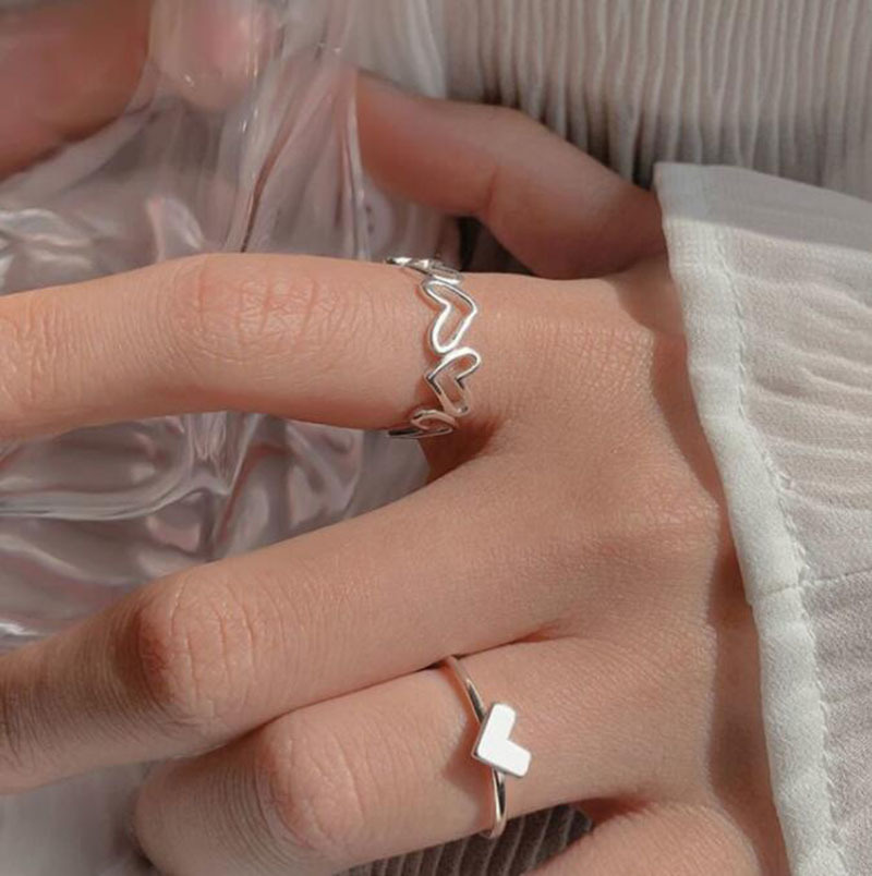 Hollow love ring two-piece set design sense niche simple heart-shaped ring female open ring ring cold style