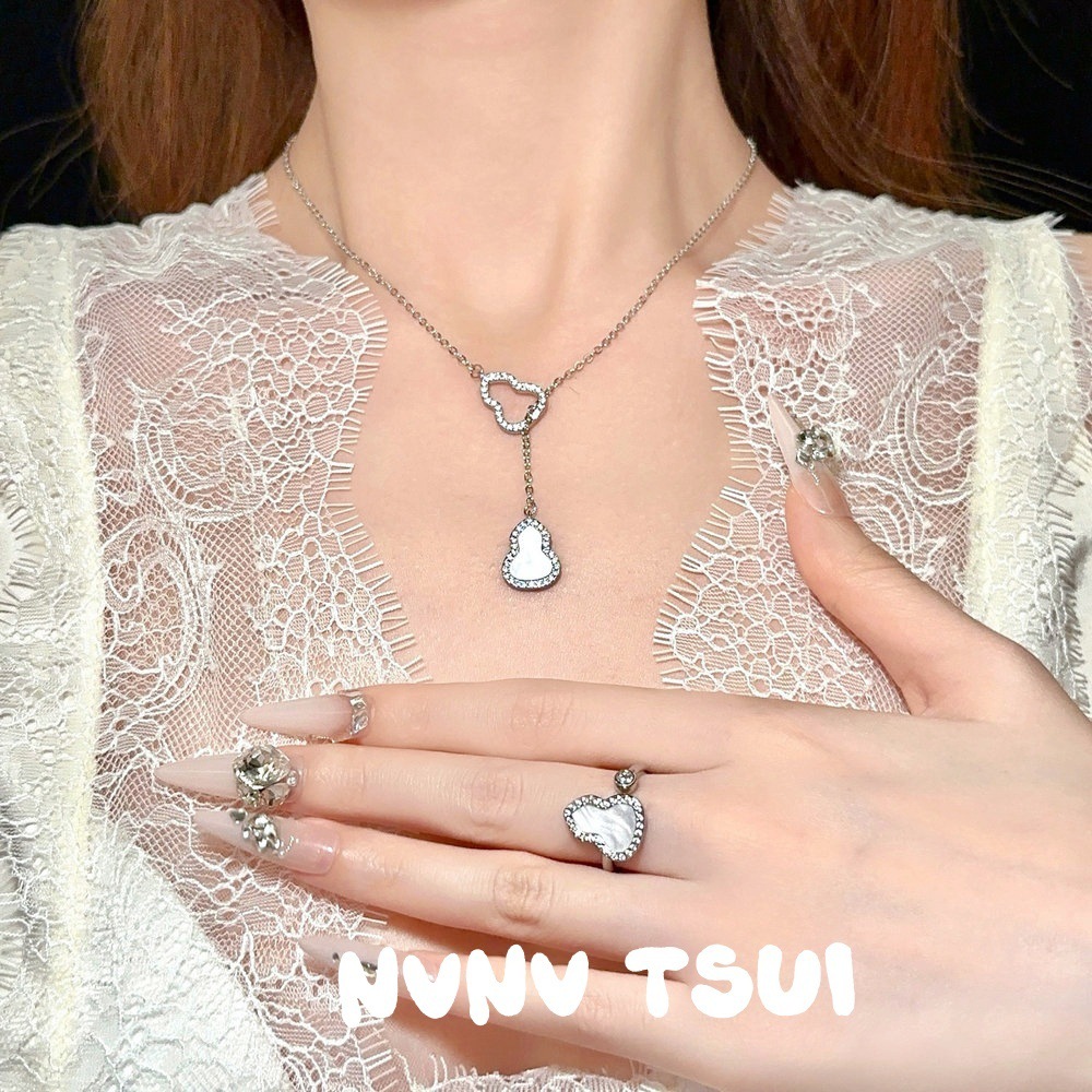 Jewelry Filigree Mother-Of-Pearl Gourd Gemstone Necklace Designer Pointed Diamond Fortune Ring Set