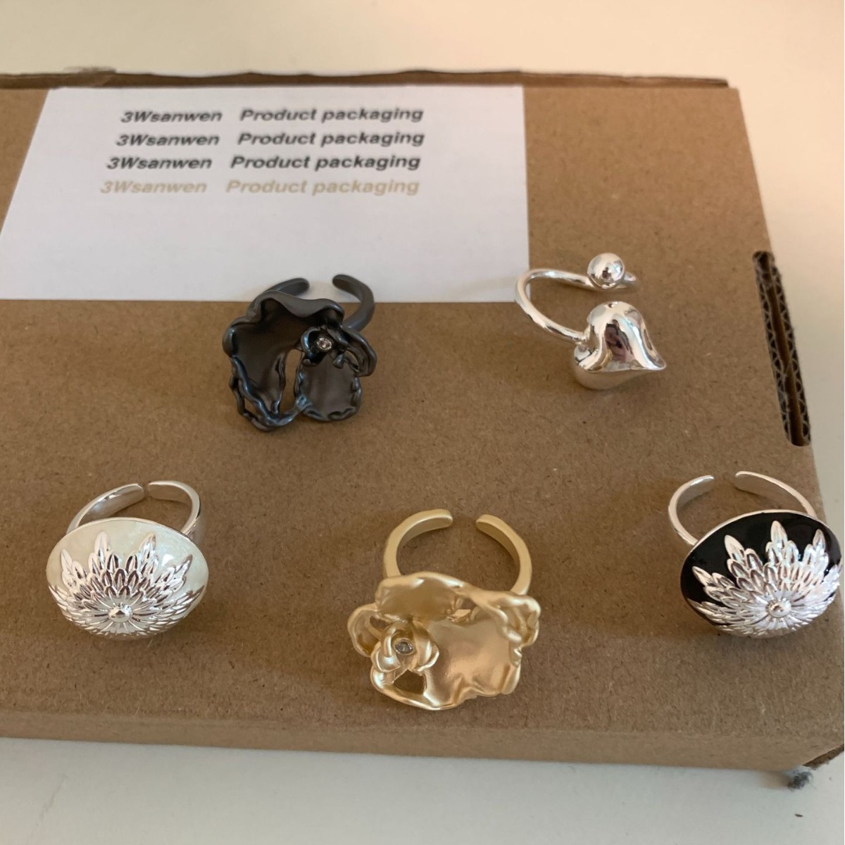 Niche Designer Handmade Metal Texture Open Ring Women's Accessible Luxury High-End Retro Stamen Index Finger Ring
