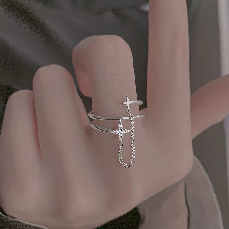 925 Silver-Plated Chain Meteor Double-Layer Ring Women's Niche Design Ring High-End Accessible Luxury Open Ring Index Finger Ring