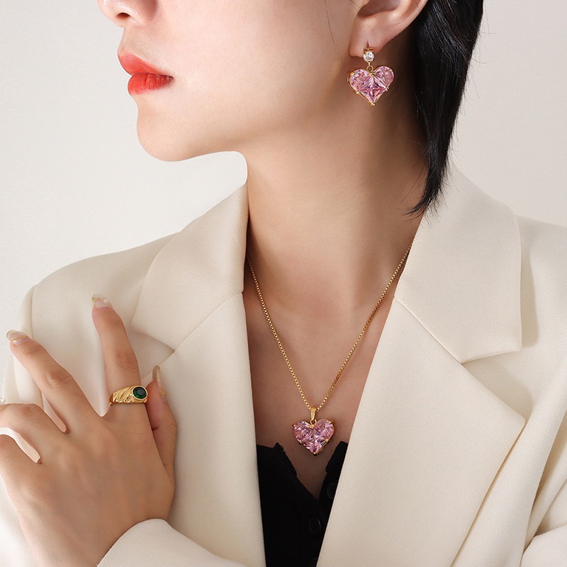 Brilliant Pink Love Diamond Pendant suit Designer Personalized Heart-shaped Zircon Necklace Earrings Internet Celebrant Jewelry