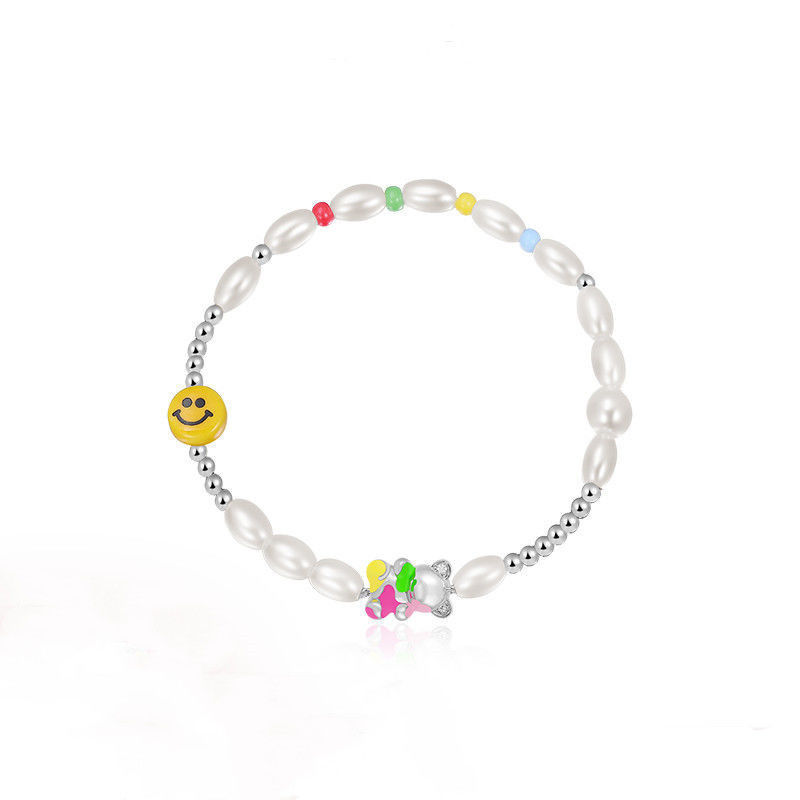 Designer Rainbow Smiley Beaded Bracelet Women's Summer High-end Pearl Color Bear Girlfriend Bracelet New