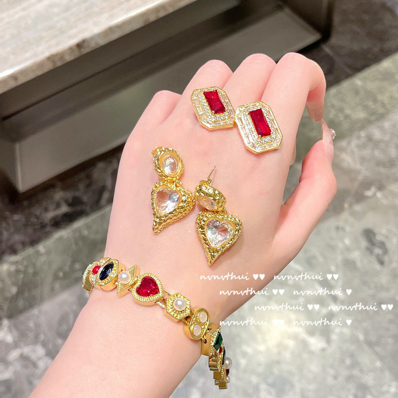 Ruolai pomegranate red irregular geometric gem bracelet designer plated 18K gold color treasure zircon bracelet middle ancient