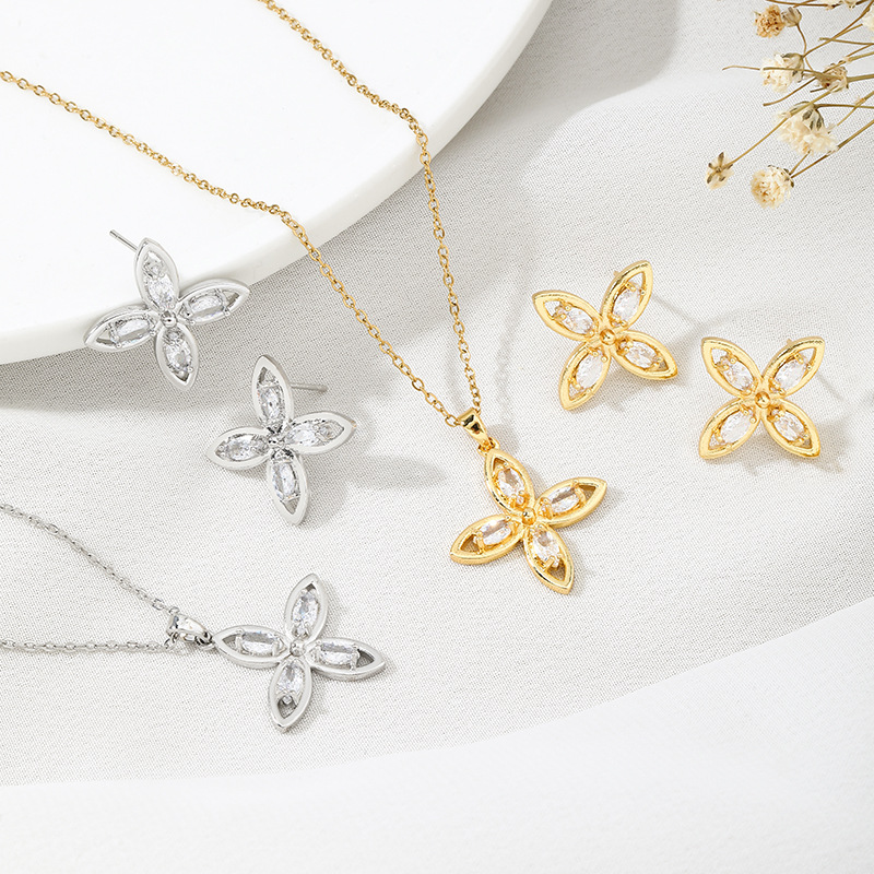 New fashion high quality clover necklace stud earrings suit inlaid 3A zircon charm temperament designer style