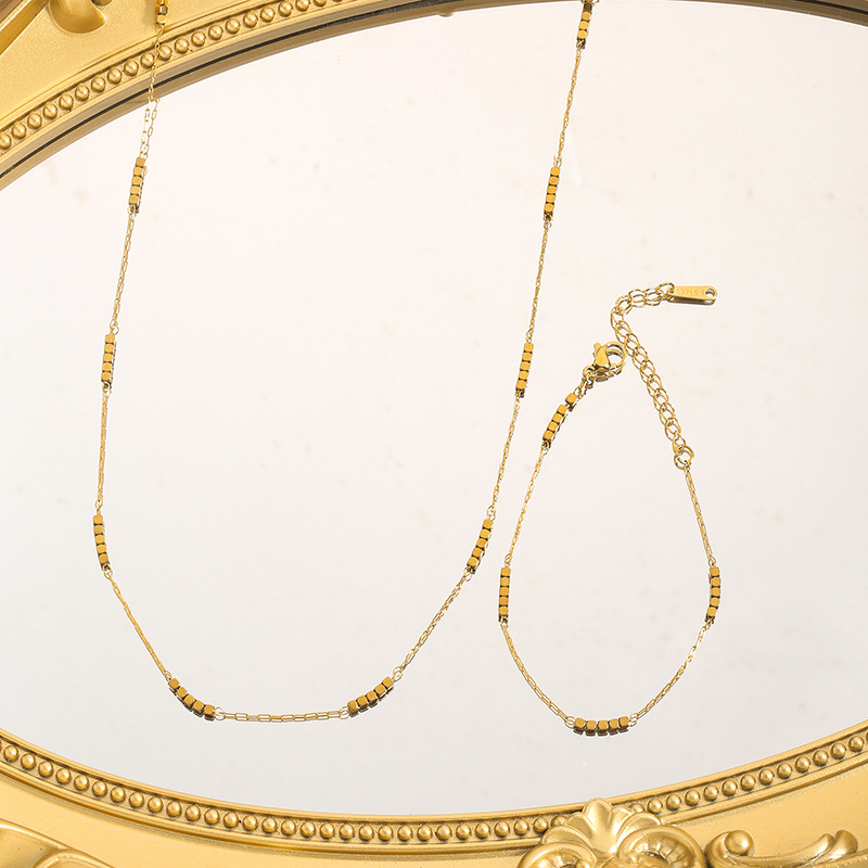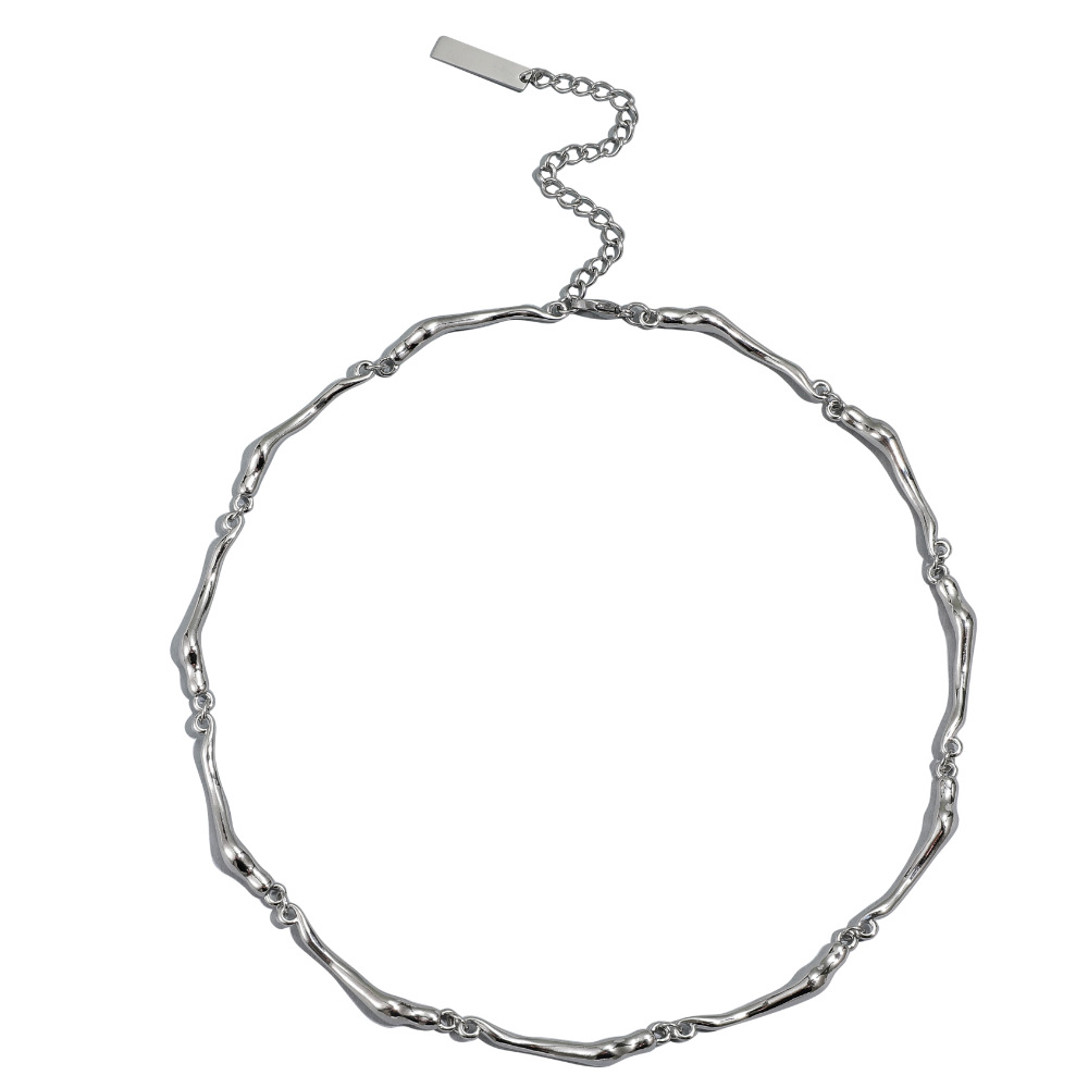 Cross-border Titanium Steel Gold and Silver Shattered Silver Necklace Women's Small Square Niche Design Sense Advanced Sense Retro Clavicle Chain