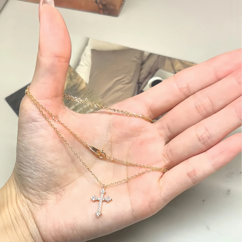 S925 Sterling Silver Plated 16K Gold Full Diamond Cross Necklace Women's Niche Design Accessible Luxury Fashion Versatile Clavicle Chain