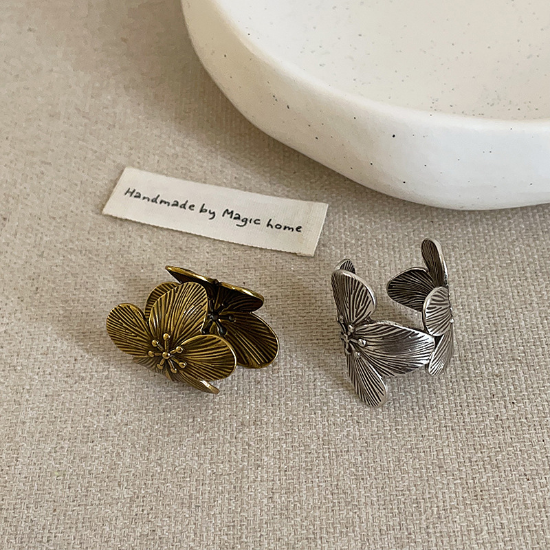 European and American Exaggerated Distressed Flower Ring Female Niche Design Sense Personality Fashion Elegant Trend All-match Ring Ring