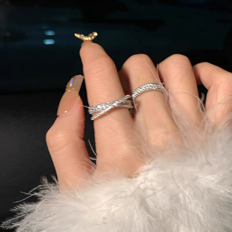 Niche Design Sense Staggered Zircon Metal Open Ring Women's Korean-style Simple All-match Elegant Ring Ring Ring