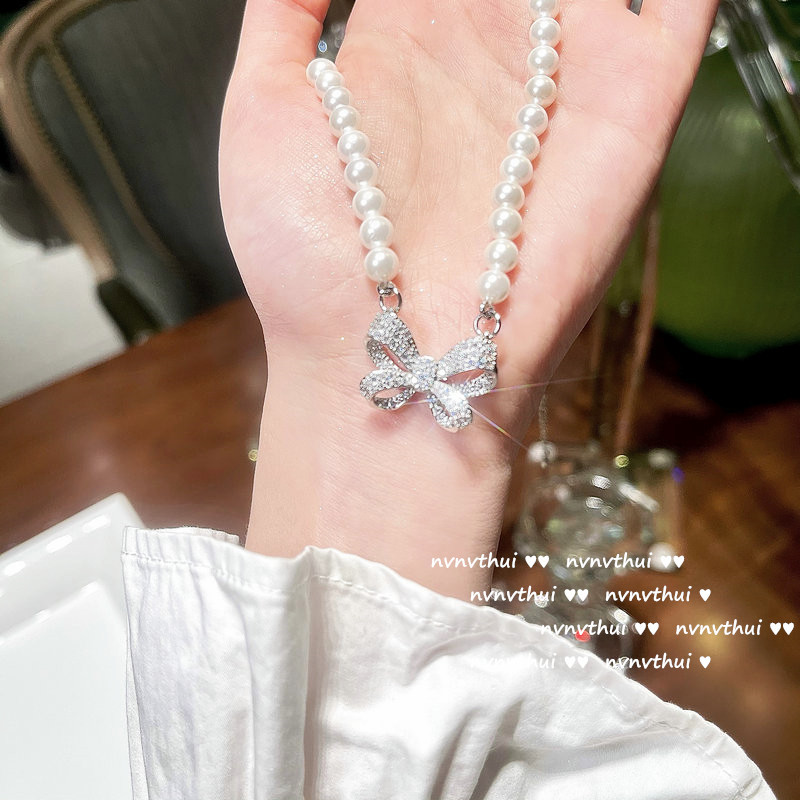 Sea Baroque bow gem necklace designer Internet celebrity full diamond heavy industry bow series pearl necklace