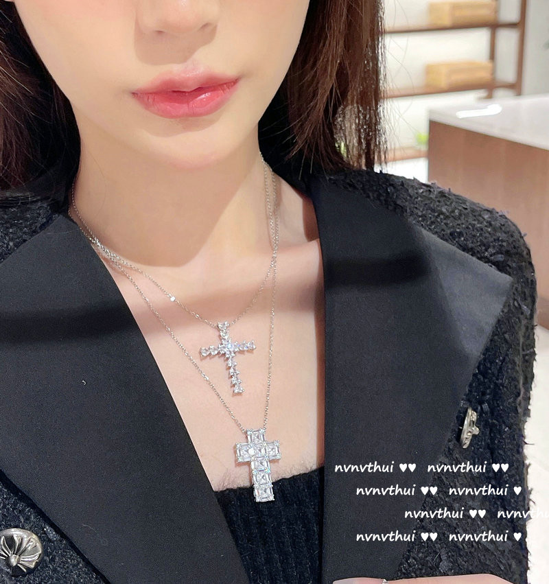 Brilliant Light Cross Gem Necklace Designer 18K Gold Plated Cross Zircon Necklace Clavicle Chain